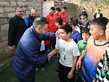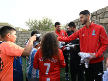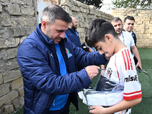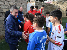 Members of Azerbaijan national team met with teenagers train in Kurdakhani settlement of Baku. The meeting was attended by head coach of Azerbaijan A-team Aykhan Abbasov, team director Ilgar Gurbanov, players Rza Jafarov, Jeyhun Nuriyev, Mustafa Ahmadzada, as well head of AFFA Grassroots Department Farrukh Ismayilov.