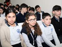 Səbail rayonu üzrə Məktəbli Qızlar Turnirində iştirak edən komanda ilə baş tutan görüşdə məktəbin direktoru Aytən Baxşıyeva, AFFA-nın Qadın Futbolu Departamentinin rəhbəri Zümrüd Ağayeva və departamentin əməkdaşları, qadınlardan ibarət Azərbaycan milli komandasının baş məşqçisi Siyasət Əsgərov, eləcə də millinin futbolçuları iştirak ediblər.